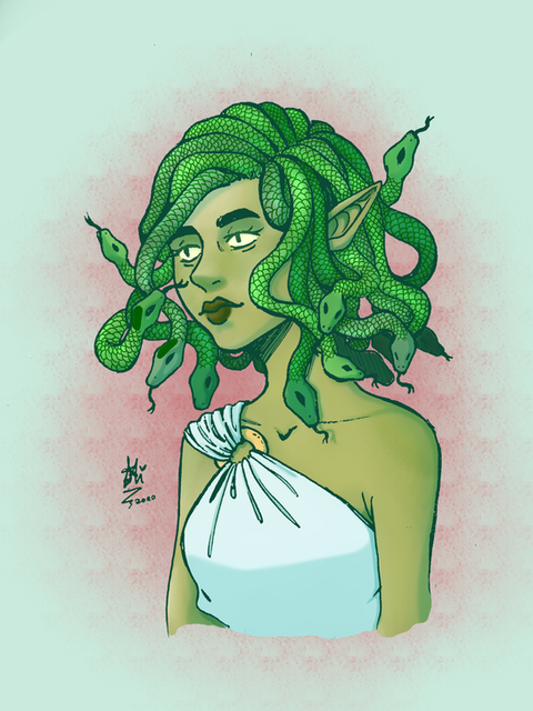 Thanks! I wanted her to be snake-monstery, but not on the Gorgon level, lol
