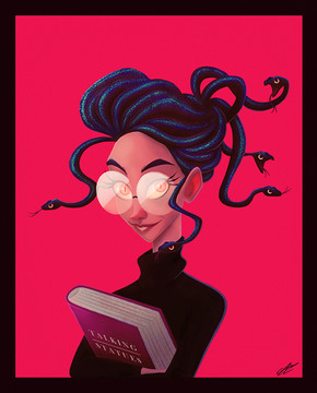 That confused and disappointed expression, her pose and that fashion sense definitely screams normal teenager to me, even though she is snake-headed!Β I love the shading here and how the colors of the shadows are pulled from the background!Β Excellent work!