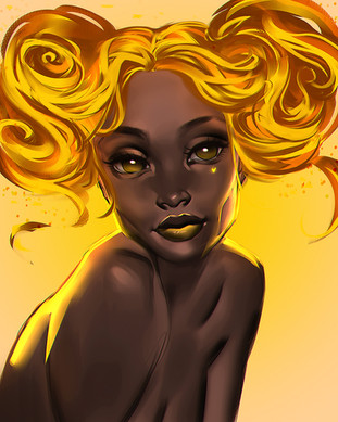 LOVE the shine in the eyes and the red line under the lower lip is absolutely making this picture so much more tan it would be otherwise. Love the hair too, especially that it's so hard to do curly hair but you made it look realistic and fun and natural. And of course the idea by itself and again, the amazingly fabulous colour scheme is just brilliant