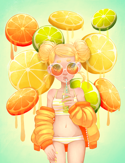 #editorial #green #greenhair #illustration #juicebox #lemon #lemonlime #lime #limelight #limes #orange #poc #yellow