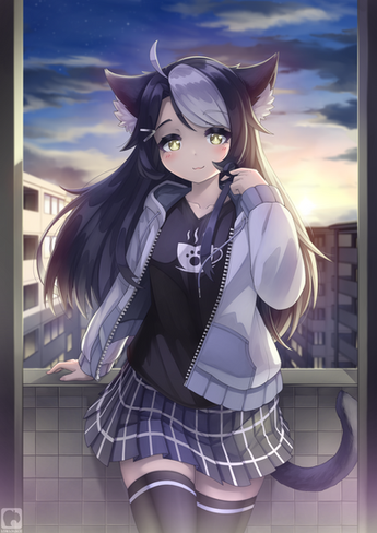 #black #cat #catgirl #digital #digitalart #kat #lookout #milk #painting #photoshop #scene #sunny #sunshine #art #kemonomimi