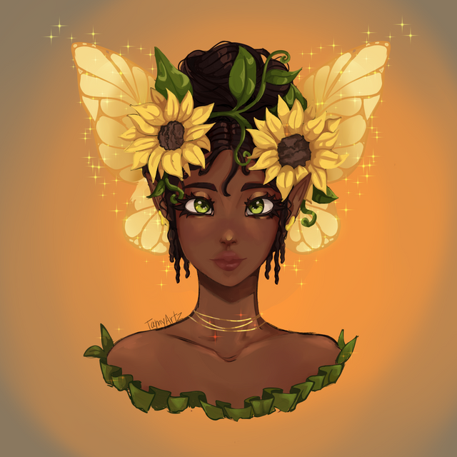 I like how warm and gentle this piece is because of the bright oranges and the dandelions. Well done ^^