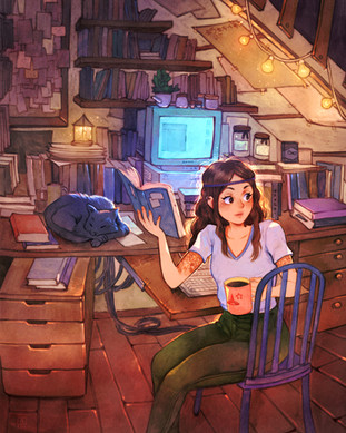#blue #chill #dragon #dragons #furniture #girl #idyllic #illustration #nautical #pet #photoshop #reading #relax #room #windowseat #wyvern #art