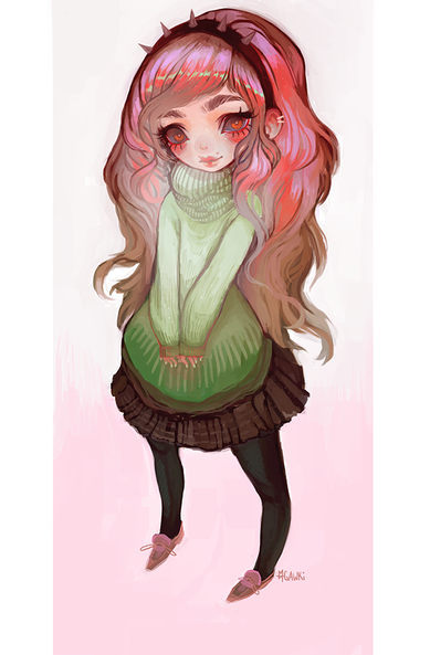 Oh wow this is BEAUTIFUL! You always use the loveliest color palettes * v * I especially love the colors of the poncho and the shirt, and her hair is so cute!
