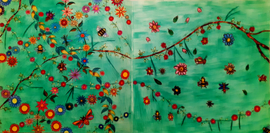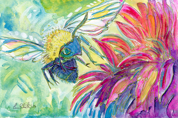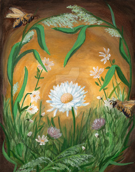 #plants #watercolour #traditionalart #floral #pattern #insect #bees #daisies #purples