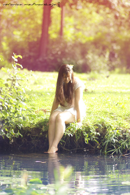 I've had this idea for a very long time, and working on this image also took a while - I changed the environment twice, and could not somehow choose the right set of kids to stand blurred in the bakcground.ArtReferenceSource - model, [Stock: Jenna 30 Fine Art Nudes ] | TinaLouiseUk - branches, [Branches png ] | PikKatze - fish scales, [Fish Scales ] | kuschelirmel-stock - water, [Clear Lake - Stock Pack 02 ] | other landscape parts, grass, children - resources purchased or on CC0.