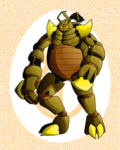StormTyrantulamon - MegaTyrantulamon seeking more power through sheer power of electricity, digivolves to this, a juggernaut. Each of its legs gets it own functionality in defense and or offense. Firstly its jaw, greatly more powerful and can even charge balls of electricity at its enemies, the first pair of legs can combine to form a shield on its front. With combination with its charge attack on its head, it can be very useful as a surprise attack. The Second pair of legs is used as a claw on the lower part and its upper part is more on defense. The Third pair of legs is much more offensive, this leg can attack in three directions at StormTyrantulamon’s sides up, at the ground and in between. The last pair of legs makes StormTyrantulamon hold on to ground, halting recoil. Its abdomen is capable of bursting electro-magnetic pulses in a large area around it. Along with this series of upgrades, StormTyrantulamon boasts in defense.