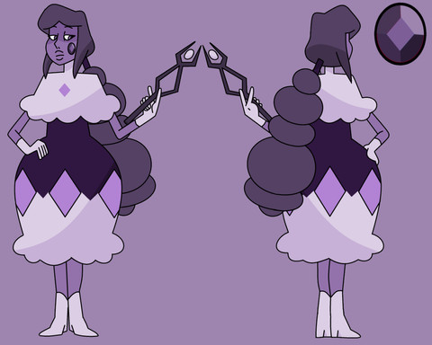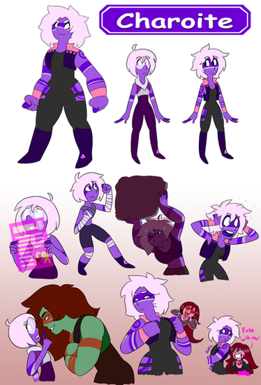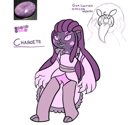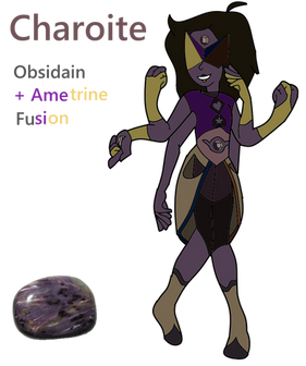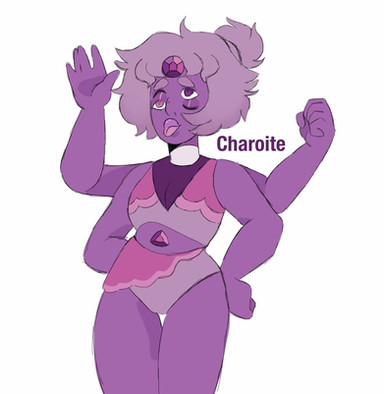 charoite is sugilite‘s cold, negative and dangerous side often making people around her feel unease and the part of sugilite pearl worries about more. But despite this she is a stable fusion and does carry out mission objectives effectively