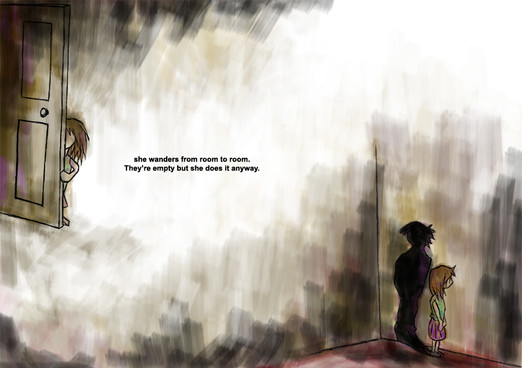 Um I drew sketches of the characters first then painted them black, the grass was done the same and I drew every blade with different brushes