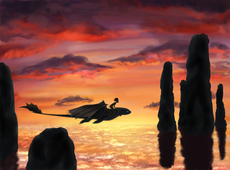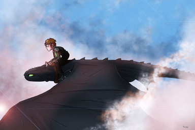 Just Toothless and Hiccup flying through some clouds!Happy fan art friday!