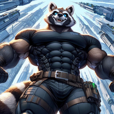 #adoptable #furrymale #furry #abs #adopt #anthro #bandit #bara #biceps #bodybuilder #chest #claws #daddy #gear #harness #hunk #leather #masculine #masked #muscle #muscles #muscular #orange #pecs #procyonid #raccoon #scruff #smirk #dilf #genasvinofarm
