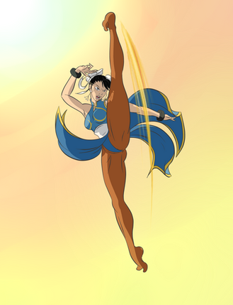 Probably the most famous lady in gaming I wanted to convey Chun-Li using her most famous assets... her legs; and what better way to do so than with a high intensity split kick pose.