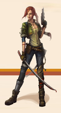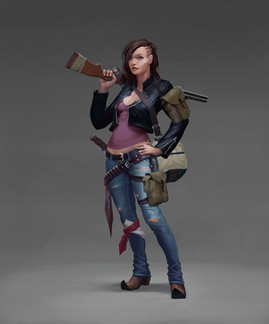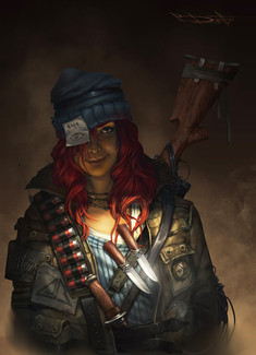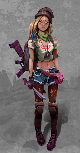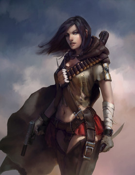 Beautiful picture. I love your style of coloring her and the background, the texture is wonderful. I like how you make her look nice, but also tough.
