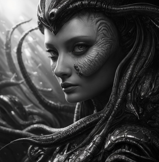 #alien #digitalart #scifi #fanart #characterdesign #portrait #beauty #fantasyart #horror #ai #concept #fantasy #gemale #hero #villain #woman #aiart #ai_generated_art #aigeneratedart #aiartcommunity