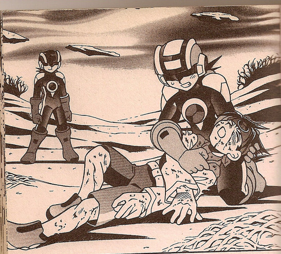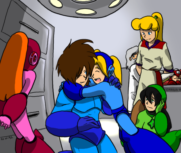 With some difficulty Megaman sat up, and eventually embraced the old man, who returned the gesture. He murmured, “I’m sorry…I’m sorry…I’m sorry…” until he passed out.
