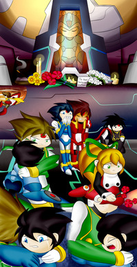 So emotional! *sniff* This is such a good story... You can't help, but feel bad for Rockman even though you know what he did was very Very VERY wrong. In a way, though...It had to be done. Megaman must feel so terrible. This is one of those situations where one family member does something absolutely terrible, bu the rest of the family loves him enough to bury it deep down into the depths of thier minds and history and never ever speak of it, in order to protect thier loved one. I guess Megaman feels very undeserving... I would give Mega the biggest hug in the world right now, but I don't think all the hugs in the world would help him right now...