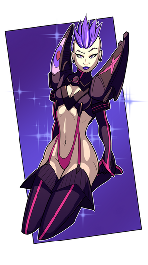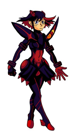 ... And she's possessed!Well, that's how Grafted started. You might also notice that Sasha's hair is down instead of up. The graft simply subsumes its host. In the show, Ryuko's personality was re-written. I figure that would be the case here if the scenario involved this strange stripper outfits.