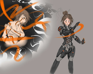 XenoGirl's color scheme of black with dark grey and a bit of yellow and purple will be gone when we get to the second part of her story. Where she becomes a much darker character.