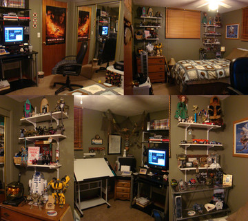 Cool room! ^^ I saw the wolf picture, hehe. ^^ Big wolf fan here. (Though I don't emphasize it that much on my DA page lol). I don't have the computer or TV in my room. But I do live in the basement. And I've got my own office area where I have my computer and a place to draw and my TV is in the room next to it. Living in the basement ROCKS!!!
