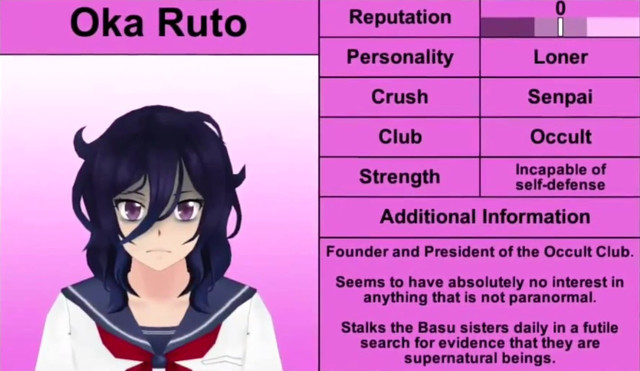 I think this is the first time i see an good yandere simulator Occulut club OC ! And i like how she has Christas vovice ^^