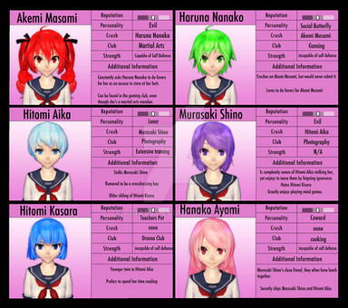 UPDATE!! So I had to update Konno Michiko info. page since YandereDev added the delinquents into the game. I looked for a delinquent crush that would be perfect for her and I thought Gaku Hikitsuri would be the best for Konno. I also updated the "personality" and "additional info." since I had a few new ideas for her along with the info below. (I added arrows to the changes I've made)This is my very first Yandere Simulator OC. I know I used an anime game to design her, but this is for the info sheet. Later I'll try to draw her, but it might not look so great. Anyway, down below is more information about her.