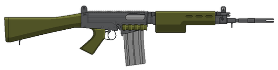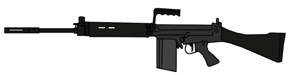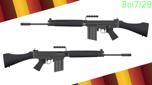 This is a Man-Killing Rifle...Our Variant was the L1A1 (SLR)... My favourite weapon of all time and the only weapon I am actually qualified on... The variant L2A1 was decent too...but fell far short of being a good enough support weapon for a section...It had 30 Rounds, Automatic (Most NATO Countries had their FNs for standard troops so they could only be set at Semi-Auto), a heavier barrel, 600m incremented sights and grasshopper folding Bipod...Chewed through 30 Rounds in about 6-7 Seconds...
