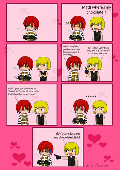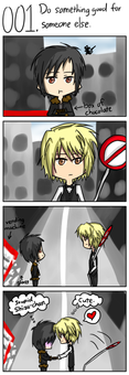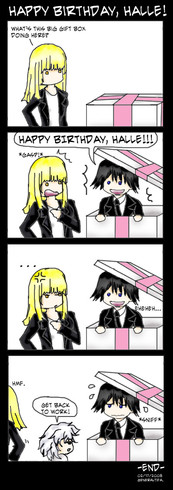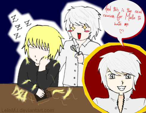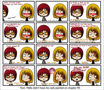 A Death Note fan comic featuring Stephen Loud (a.k.a. Gevanni), Halle Bullook (a.k.a. Lidner), and Mihael Keehl (a.k.a. Mello).Why is it that there is not a single GevannixHalle fanwork yet? Oh well, I took that as an opportunity to make this one.