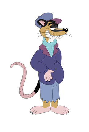 Splitty is the unknown weasel from The Car toon spin ride from Disneyland. Originally called Sleazy by his mother, who wanted him to become sleazy, but when he gained a split personality when he was a kid, he was nicknamed Splitty (or Switchy), he never had or knew his father.He has two personalities, the original personality and his split personality. His original personality is a Cockney (NO LISP) weasel from London, he is a shy skittish guy, due to his mother, he’s terrified of fighting and skittishly runs away from most things, but if friends are in trouble, he will do anything to help them.