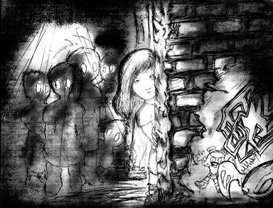 I love how you show the different drawings from the begining to the finished product. Geez, this reminds me of how my mind is when I'm trying to wade through the slimy tunnels of stress ^^ I love how there's a feeling that someting else is with the subject in the same tunnel. Like something neither you or he cannot see, yet it's lurking somewhere under the water or hidden in shrouds of darkness. Ohhh the suspense!!