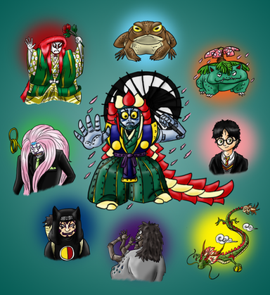 Yeeeessssss \o/ Big Hero Siiiix! Thank you so much for doing them--I see that you went gangbusters with the Meiji style clothing there. Love the bowler hat on Ginbushi there. XD