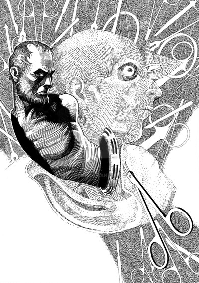 Love the lines on the skull. The middle is interesting, my first thought was a Jack The Ripper style vivisection.