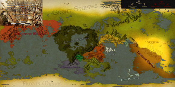 There is also very little tectonic plate boundaries upon the large continent mass, making it somewhat flat, aside from craters or the occasional giant cliff or lake. This, coupled with the planets high Axial Precession (which always keeps the equator aligned with the sun), makes the mainland a vast desert, with land towards the poles being cool enough to support plant life. This sadly means there is also very little change in seasons.
