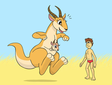 Big Female Kangaroo with a Little Naturist Boy, Riding in her pouch, While hopping for fun. Enjoy!Related content
