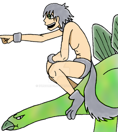 Red-headed Boy is wearing nothing but red socks, Mounting this four red legged blue Monster.