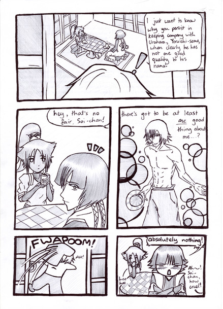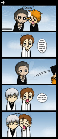 Gin and Byakuya are about the same age but Gin was all ready in the Gotei 13 while Byakuya was training privately not in the academy, still funny as hell though. perhaps you should do, Kira, Renji and Momo and after that Kusaka and Toushiro turn it into a serious XD...I'm just rambling now though.