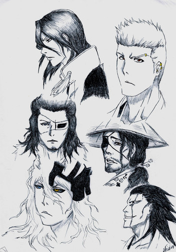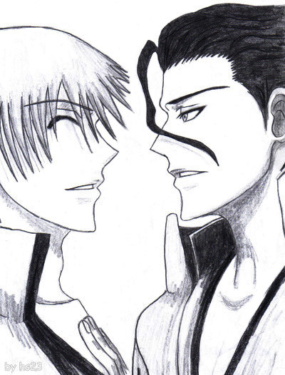 heheheh Byakuya's art sucks but has a certain charm Gin and Kaname are a good touch and i love Kaname's origami flowers