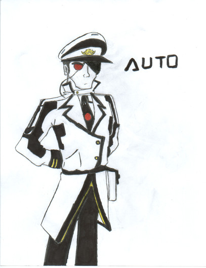 Oh my!! I'm sooo glad to hear you like my design of him! But honestly I didn't think about the back of his uniform.. As for me I just prefer something like 2-3 black dashed lines from his collar to a hem to emphasize AUTO's firmness or maybe it's better to save the back pure white