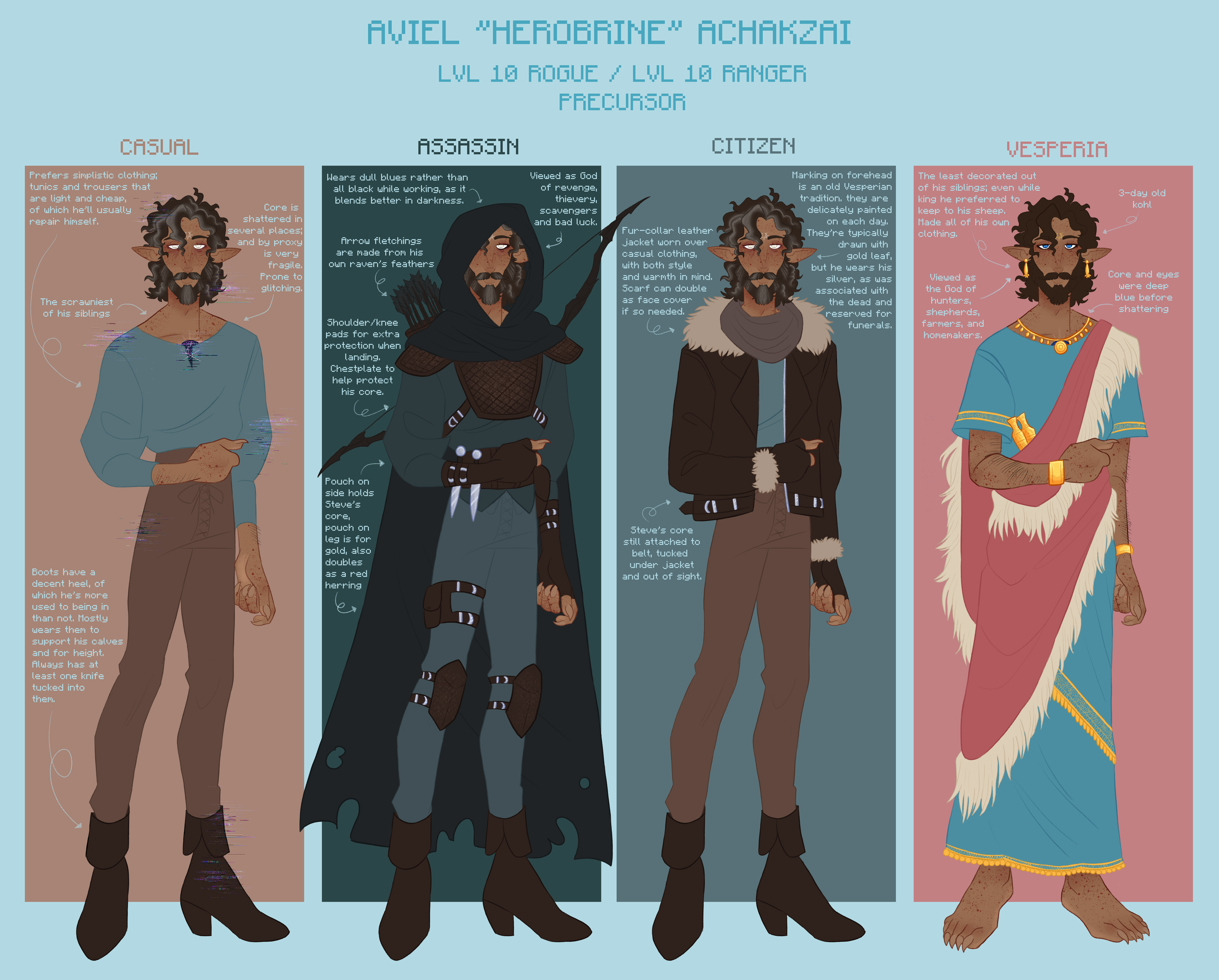Updated Alphonse sheet after a few years! (its funny because his design about 2 months after the initial one, which was really more of a draft)This is a lot more cohesive I think. I think character sheets aren't ever my "final" for any OCs, because as they evolve and I draw them more, they kinda morph from their first render LOL