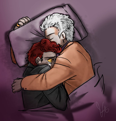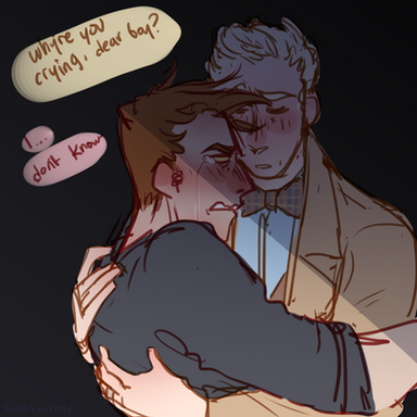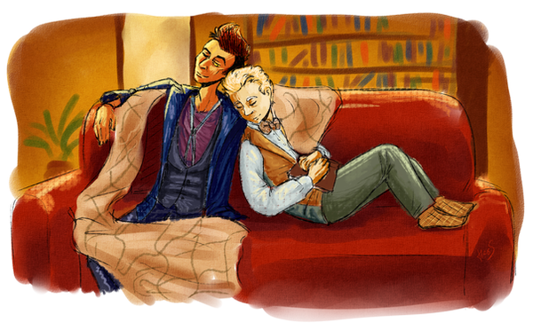 Snek man needs reliable heat source.anyway, i have like......5 more good omens pieces im working on. all of them contain crowley and aziraphale. i want to make one of pollution too but havent gotten around to it