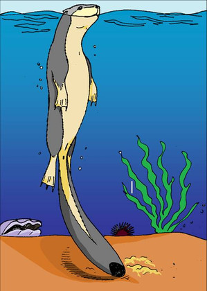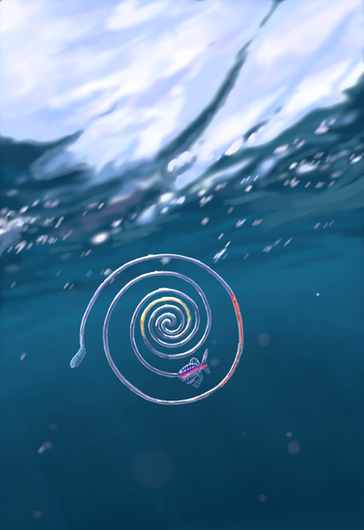 Whikes are very fast and agile due to their eel-like body shape. Their whiskers are sensory organs which aid them in navigating narrow undersea crevasses. They migrate twice a year over very long distances. In the winter they inhabit the warm waters of Aion.