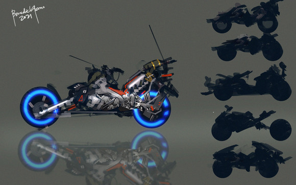 Bio Mechanical scout bike concept.I think it would look pretty funny puttering around on it's little kickstand limbs.
