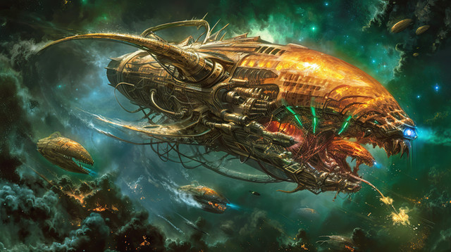 Bio mechanical ship design. I have been really interested in old school scifi art lately especially stuff from the 70's.I was imagining a bit of a book cover I think. Maybe with a title like " Arms of Ezra" or something.