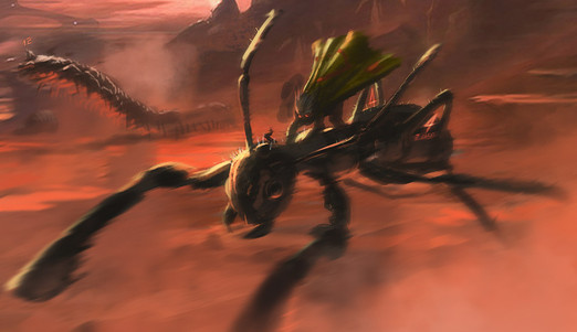 Had the idea for a biomechanical vehicle that skips along the planets surface. Kinda like how octopi do with their arms....actually that doesn't make much sense but I thought it would make a neat picture!