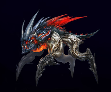 #alien #creature #creaturedesign #firebreathing #fodder #glowing #horn #insect #monster #spike