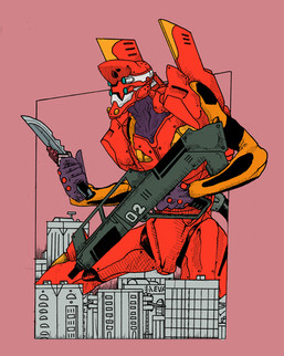 Neat! I don't really like EVAs (They're not really mechs!), and the TV show was a bit too weird and not enough stompy (Good explanation here: [link] ) but your pic is cool enough to be good. You have teh skillz.