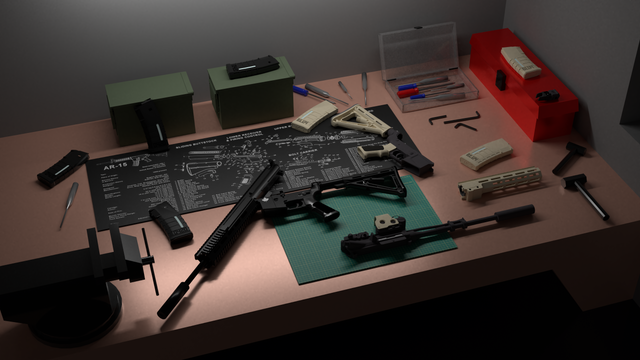 This is a collection of some of my favourite of my gun models. I put them on gun racks, made some shells and bullets of corresponding caliber, made ammo boxes, and gave different guns different attachments.Guns included:
