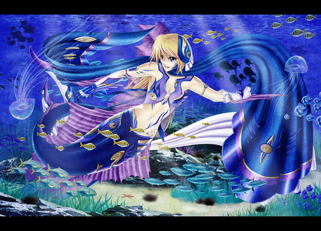 Atargatis, in Aramaic βAtarβatah, was a Syrian deity, "the great mistress of the North Syrian lands" Rostovtseff called her, commonly known to the Greeks by a shortened form of the name, Derceto or Derketo and as Dea Syria, "Goddess of Syria", rendered in one word Deasura. She is often now popularly described as the mermaid-goddess, from her fish-bodied appearance at Ascalon and in Diodorus Siculus, and also, as the first mermaid.a OOOOOLD draw for myths & legends... arround a year or more, i done it in very very rush, cause was dropped by other illustrator and the set was near to be on print (i hate deadlines XD)i finish it at time... but i never like the printed version so i took a time for edit this pic and do a new version.