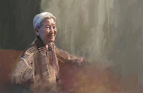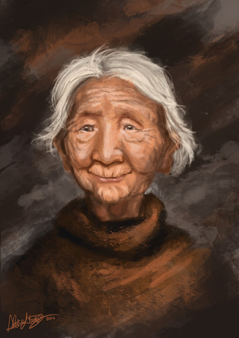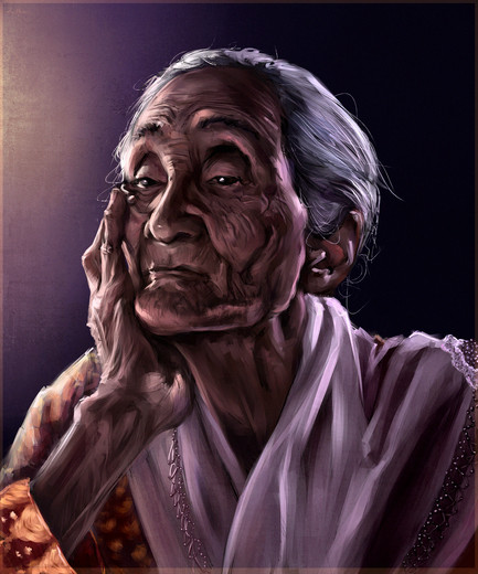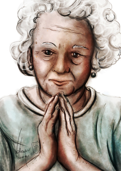 Your grandma is very sweet! The background is really wonderful! Good work!