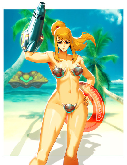 Quite the graceful pose and nice body, yet those Metroids put me on guard.