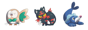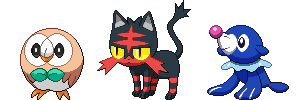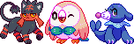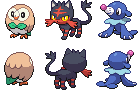 #grass #litten #moon #pokemon #sprite #starters #sun #water #rowlet #fire #popplio